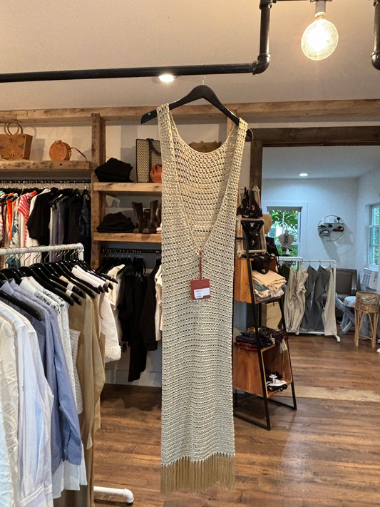 S-Mode High Neck Dress with Fringe in Champagne